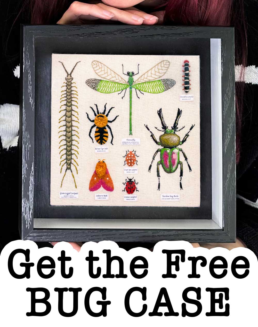 And to get your free Bug Collectors Case PDF and stitch along videos – Check out the free Bug Case embroidery stitch along.